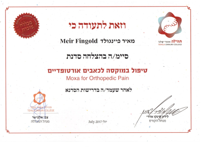מאיר פיינגולד – מטפל בדיקור סיני/קוריאני, סו ג'וק, מטפל במוקסה, כוסות רוח, טיפול קוסמטי להסרת קמטים ועוד.