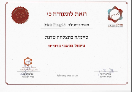 גלריית תמונות ותעודות הסמכה של מאיר פיינגולד – דיקור סיני וטיפולי קוסמטיקה במודיעין