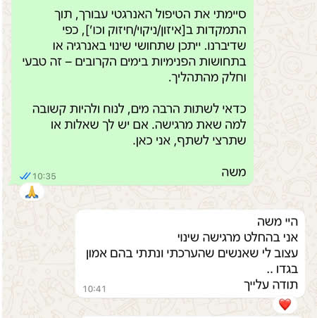 • ליווי רגשי עמוק – לשחרור פחדים, כאבים ותקיעויות מהשורש.