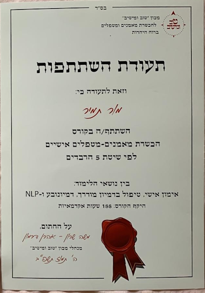 גלריית תמונות ותעודות הסמכה של העין הטובה – מור תמיר – מטפלת רוחנית דרך תקשור וכלים אימוניים-טיפוליים בירושלים