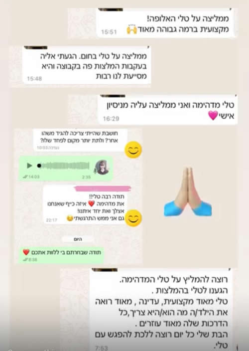 טלי אביב גרוסמן – מטפלת מומחית בטיפול בהתפרצויות זעם בילדים, מטפלת רגשית ומדריכת הורים, מטפלת בחרדה, קשיי הסתגלות, דימוי עצמי, מיומנויות חברתיות, אילמות סלקטיבית, הפרעות קשב, חיזוק הביטחון העצמי וכד'.