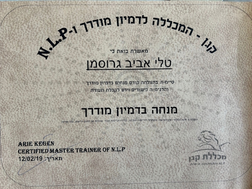 גלריית תמונות ותעודות הסמכה של טלי אביב גרוסמן – טיפול רגשי לילדים ולמשפחות במזכרת בתיה ובמרכז