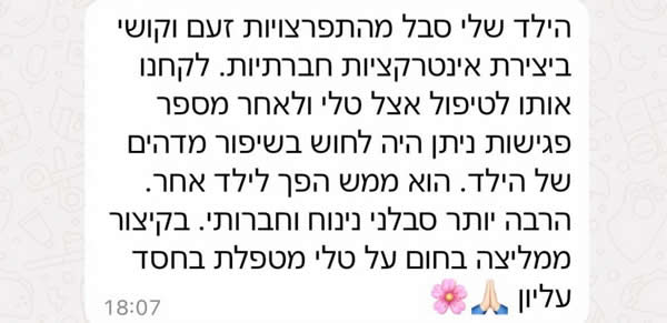 טלי מטפלת בילדים מגיל 3, הורים ומשפחות.