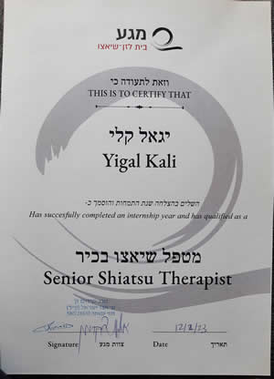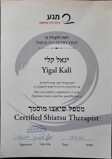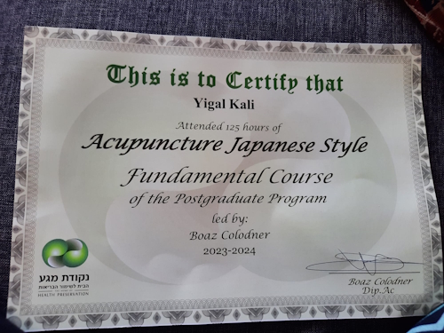 גלריית תמונות ותעודות הסמכה של יגאל קלי – טיפולי זן שיאצו ודיקור יפני בירושלים