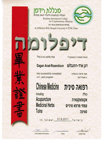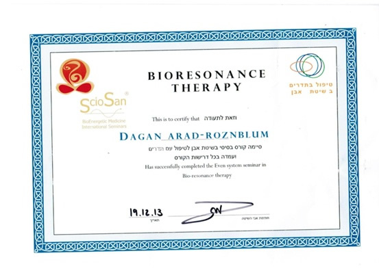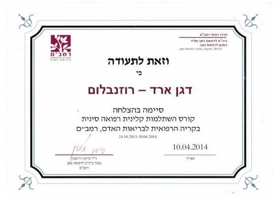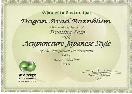 גלריית תמונות ותעודות הסמכה של דגן ארד רוזנבלום – מרפאת כאב משלימה ואורתופדיה רגשית במנחמיה ובאונליין