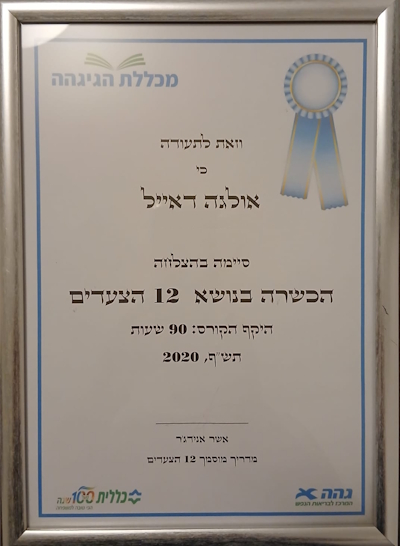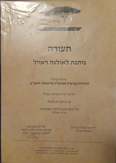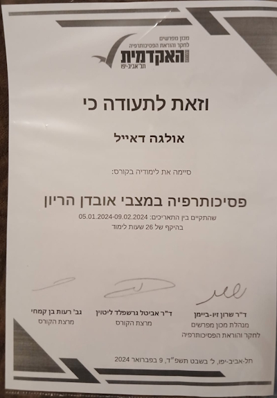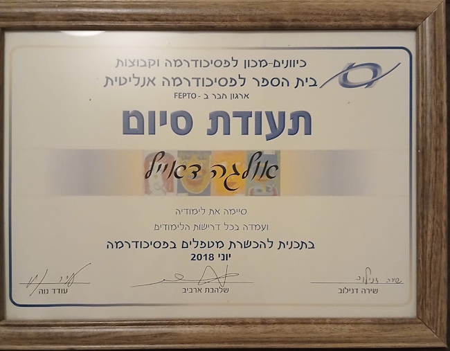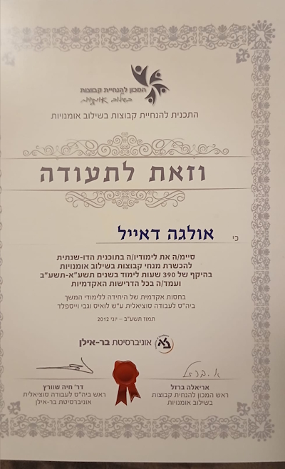 גלריית תמונות ותעודות הסמכה של אולגה דאייל – טיפול רגשי – פסיכודרמה לנשים בפתח תקוה