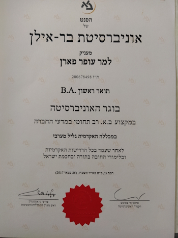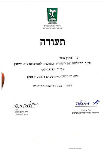 גלריית תמונות ותעודות הסמכה של עופר פארן – טיפול רגשי ופסיכותרפיה בתל אביב
