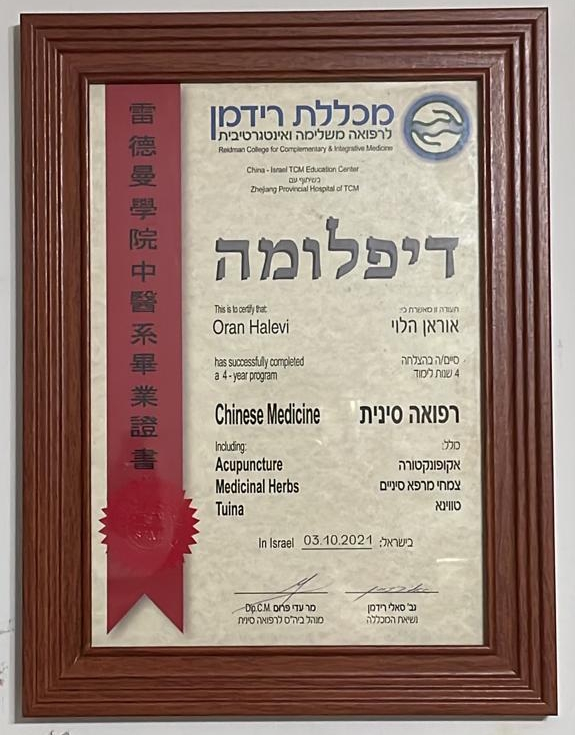 גלריית תמונות ותעודות הסמכה של אוראן הלוי – המרכז לטיפול במיגרנות ובכאבים כרוניים ברפואה סינית ברמת גן ובאונליין