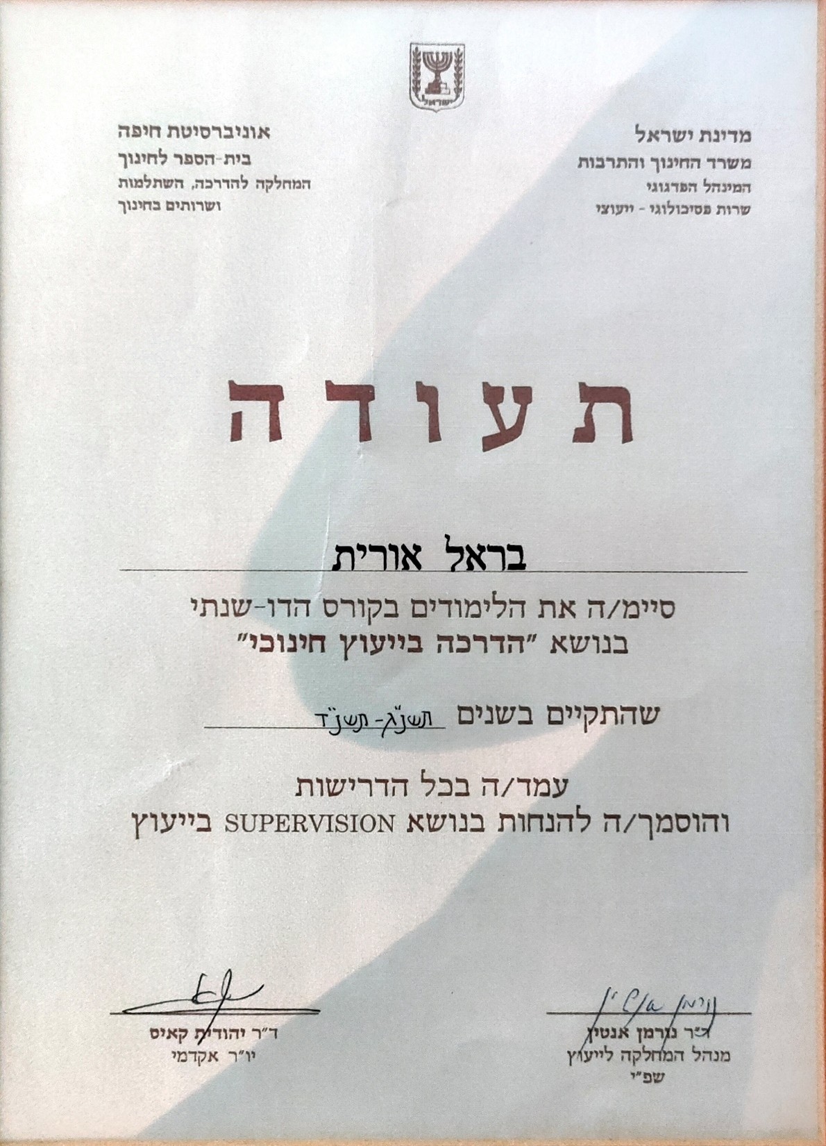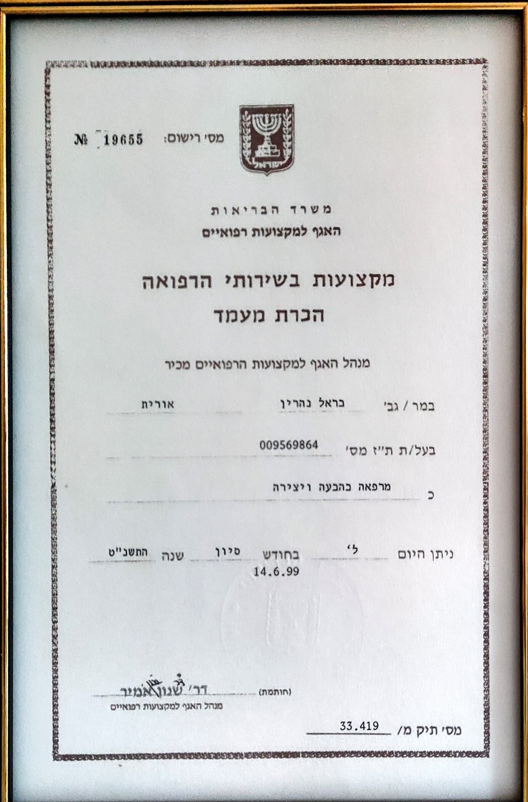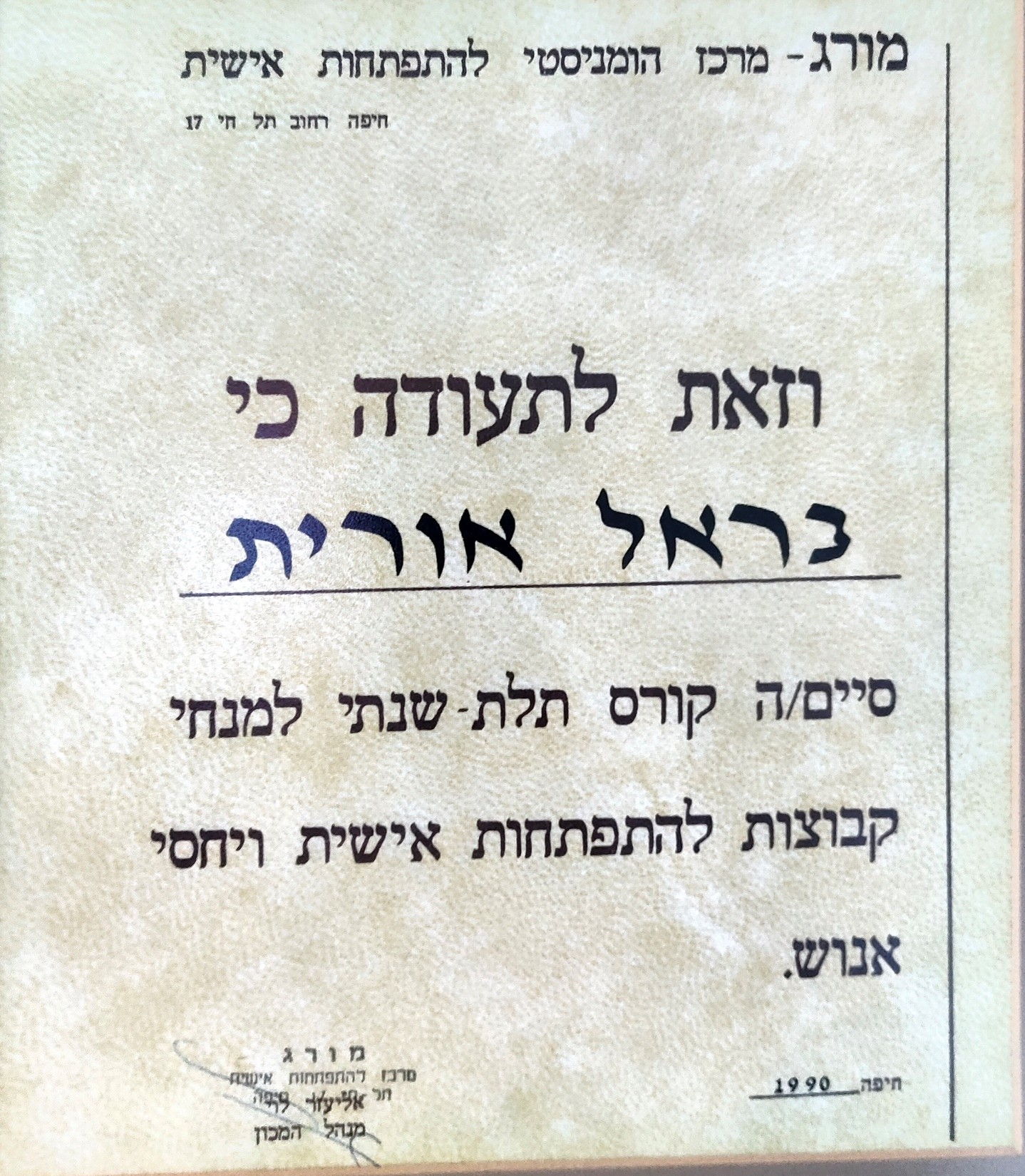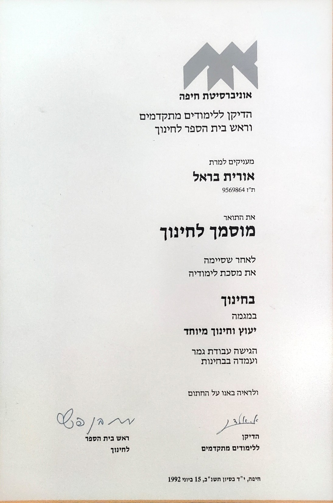 גלריית תמונות ותעודות הסמכה של ד"ר אורית בראל נהרין – מטפלת רגשית בחיפה