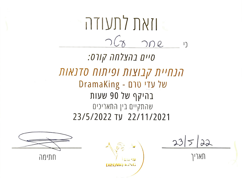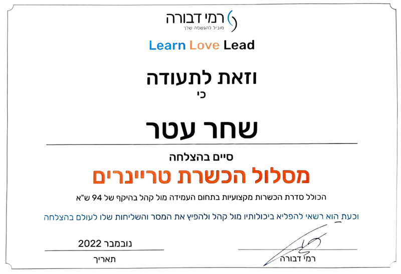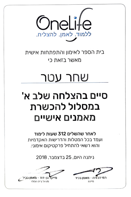 גלריית תמונות ותעודות הסמכה של שחר עטר- אימון אישי מתקדם בפתח תקווה ואונליין