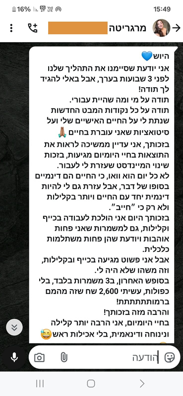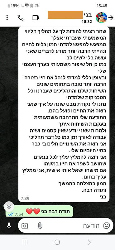 הגישה שלו משלבת חמלה, מקצועיות ודיוק – ומתאימה לאנשים שמחפשים שינוי אמיתי שמחזיק לאורך זמן.