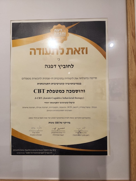 גלריית תמונות ותעודות הסמכה של דפנה לחוביץ – מטפלת רגשיתCBT מומחית למערכות יחסים רעילות, חרם, בריונות בפתח תקווה ואונליין