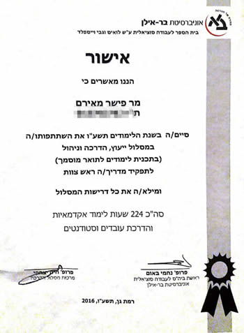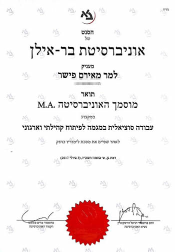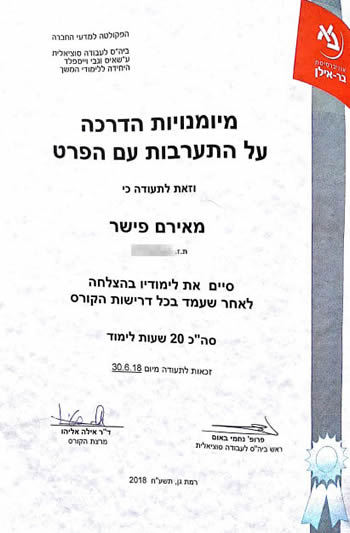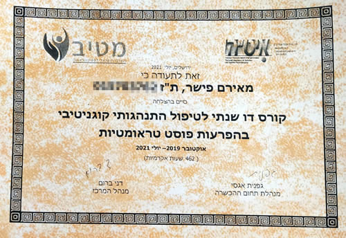 גלריית תמונות ותעודות הסמכה של מאירם פישר – טיפולי פסיכותרפיה CBT EMDR טיפול זוגי והדרכת הורים בירושלים ובאונליין