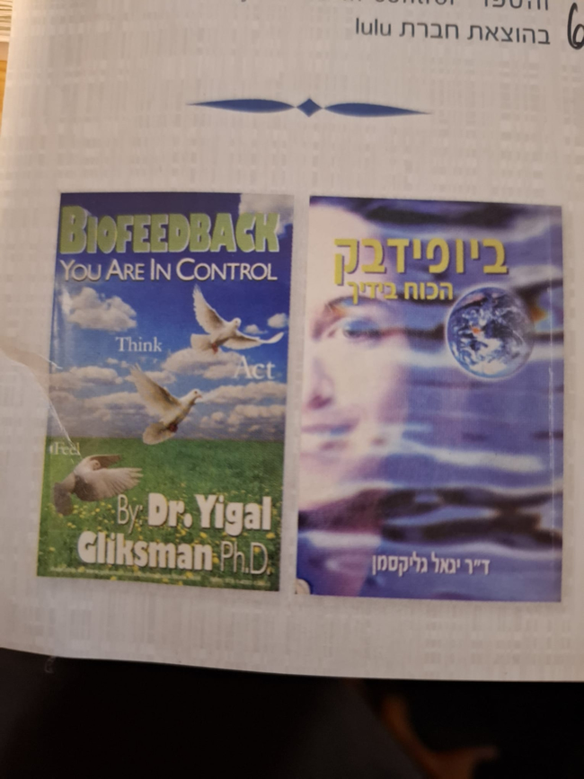 מחבר שני ספרים בתחום הביופידבק: האחד בעברית בהוצאת אור עם "ביופידבק הכוח בידיך" והשני באנגלית biofeedback you are in control בהוצאת lulu