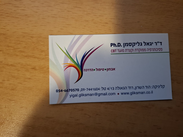 ד"ר יגאל גליקסמן Ph.D – פסיכותרפיסט מומחה לטיפול קצר מועד לבעיות רפואיות ופסיכולוגיות באמצעות פסיכותרפיה קצרת מועד ושיטות נוספות בהוד השרון.