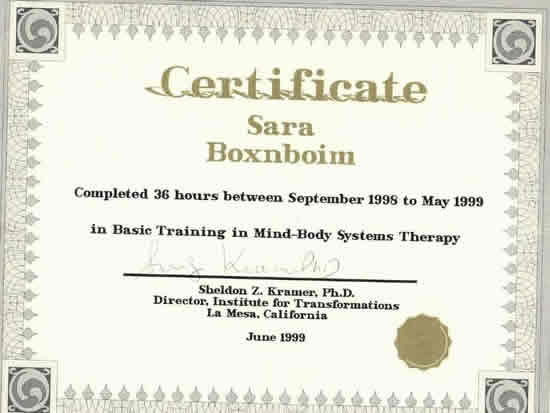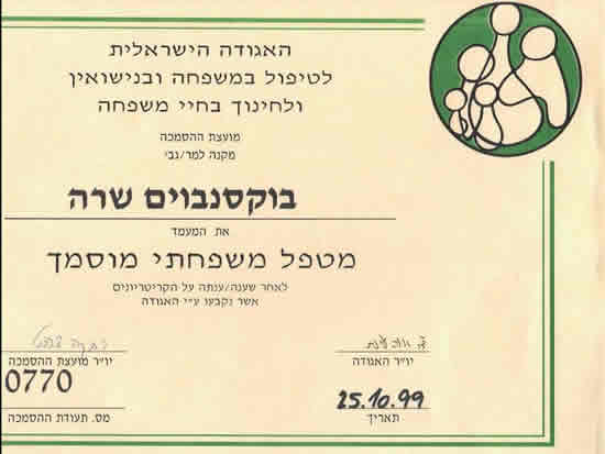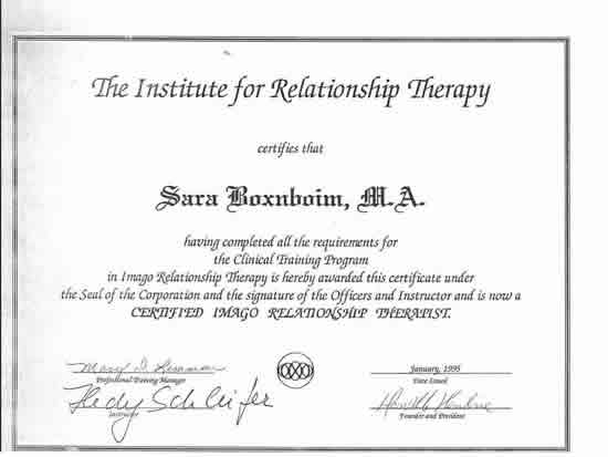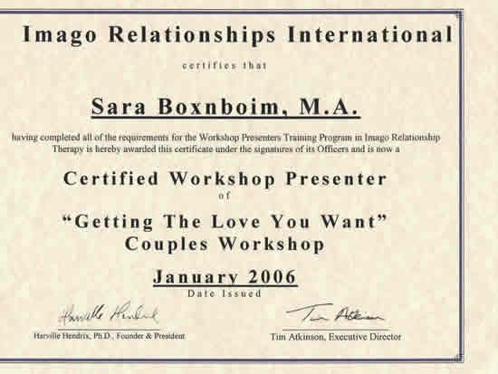 גלריית תמונות ותעודות הסמכה של שרה בוקסנבוים – טיפול זוגי והנחיית סדנאות לזוגיות בחיפה