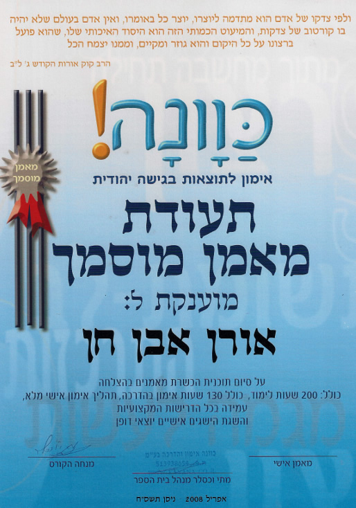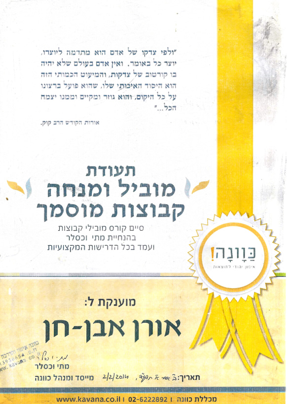 גלריית תמונות ותעודות הסמכה של אורן אבן חן – מאמן אישי להצלחה בגישה יהודית בירושלים
